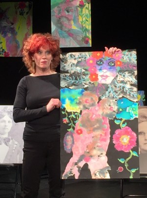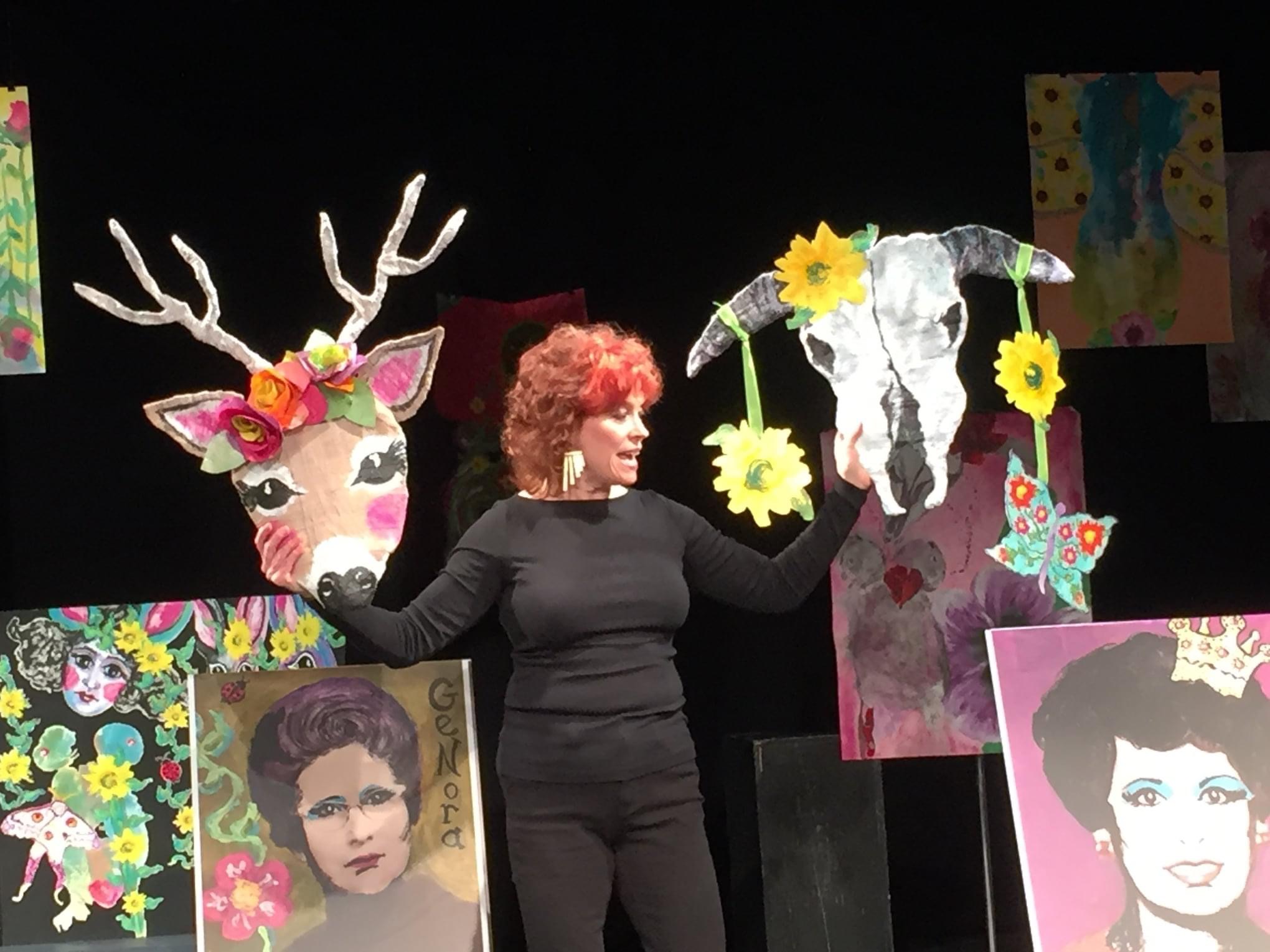 In this spirited 1-woman show, artist & playwright Vicki Todd invites you on a journey to her hometown of Happy, Texas (the Town Without a Frown), into a fairytale realm inhabited by her vivid body print art & sculpted masks, & among her maternal ancestors who illuminate her path. Vicki uses the play format as a magical, evolving art exhibit that urges you to follow your heart’s whispers, rather than society’s shouts of what’s expected. Directed by Talia Pura.
