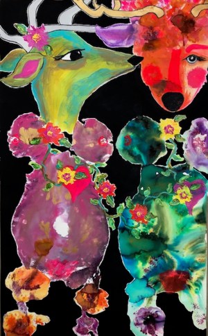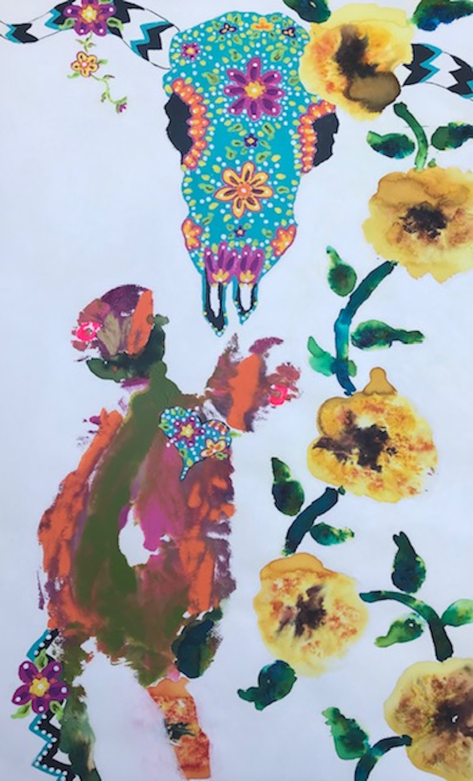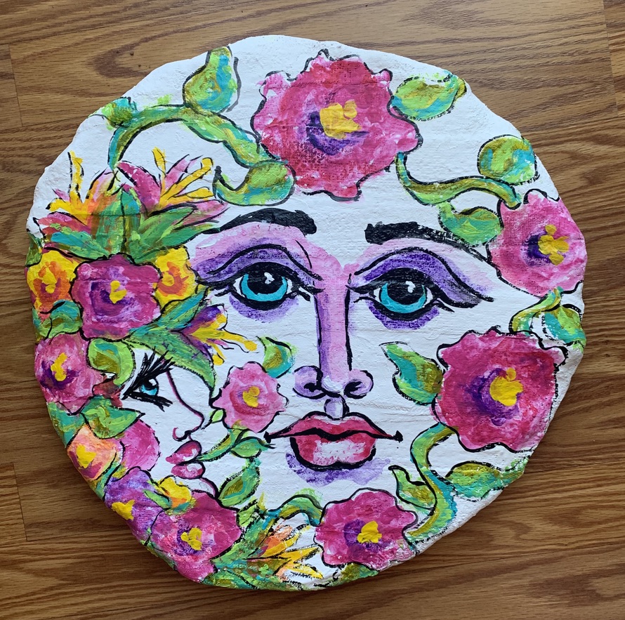 I’ve written a spirited one-woman stage show, called Shine Happy Shine! It invites you on a journey to my hometown of Happy, Texas (the Town Without a Frown), into a fairytale realm inhabited by my vivid body print art and sculpted masks, and among my maternal ancestors who illuminate the path. I use the play format as a magical, evolving art exhibit that urges you to follow your heart’s whispers into a life embodying your creative core, rather than following society’s shouts of conforming to the “norm.”