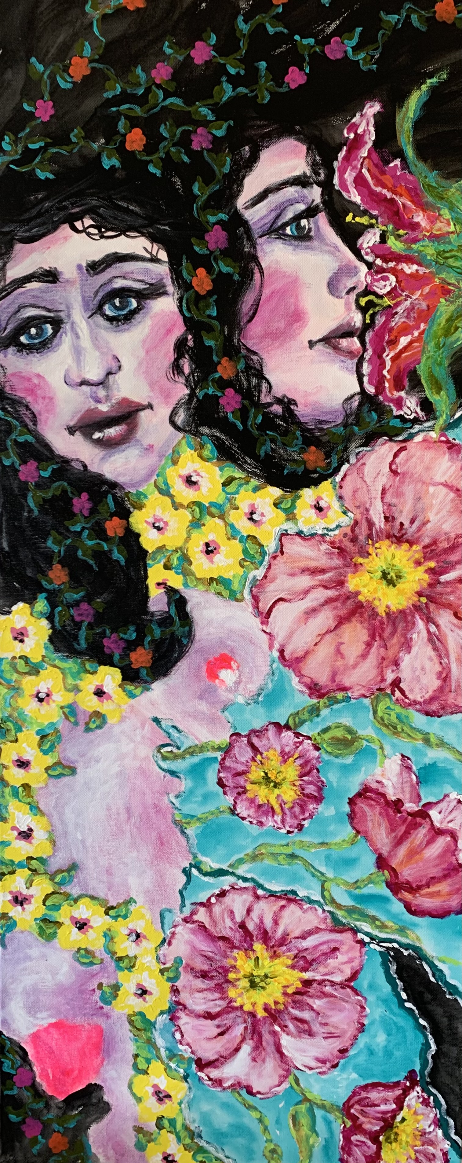 - Clay sculptures: I‘m envisioning the Courageous Dreamer as a seated nude female figure who will sit at the base of the canvas body print map. Also, other dreamlike components – perhaps a sculpted foot with a nude female torso arising from the ankle in place of the shin/calf with a female face surrounded by flower petals (being rooted, yet blooming in the dream space). My Keeper of Secrets sphinx sculpture – she holds ALL the secrets the Courageous Dreamer conjures during dreams.