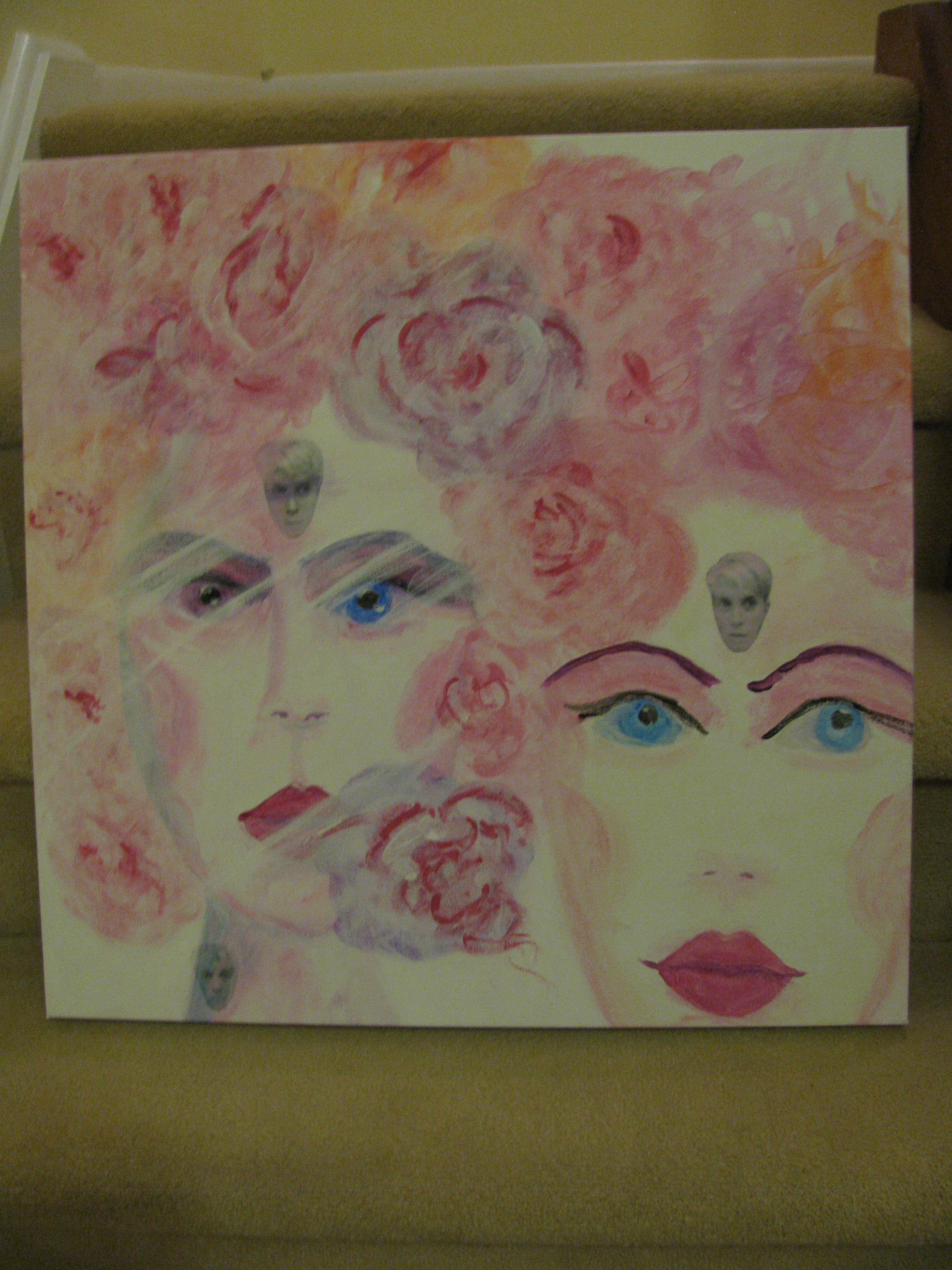 Voices was a new experiment for me. First, I had never painted a portrait based on my actual image. I’ve always used photos from magazine articles or ads as the basis for my portraits, while the meaning behind the images created the autobiographic/memoir element of my works. Second, I’ve never sketched or painted the same image more than once. Voices broke both of these boundaries.