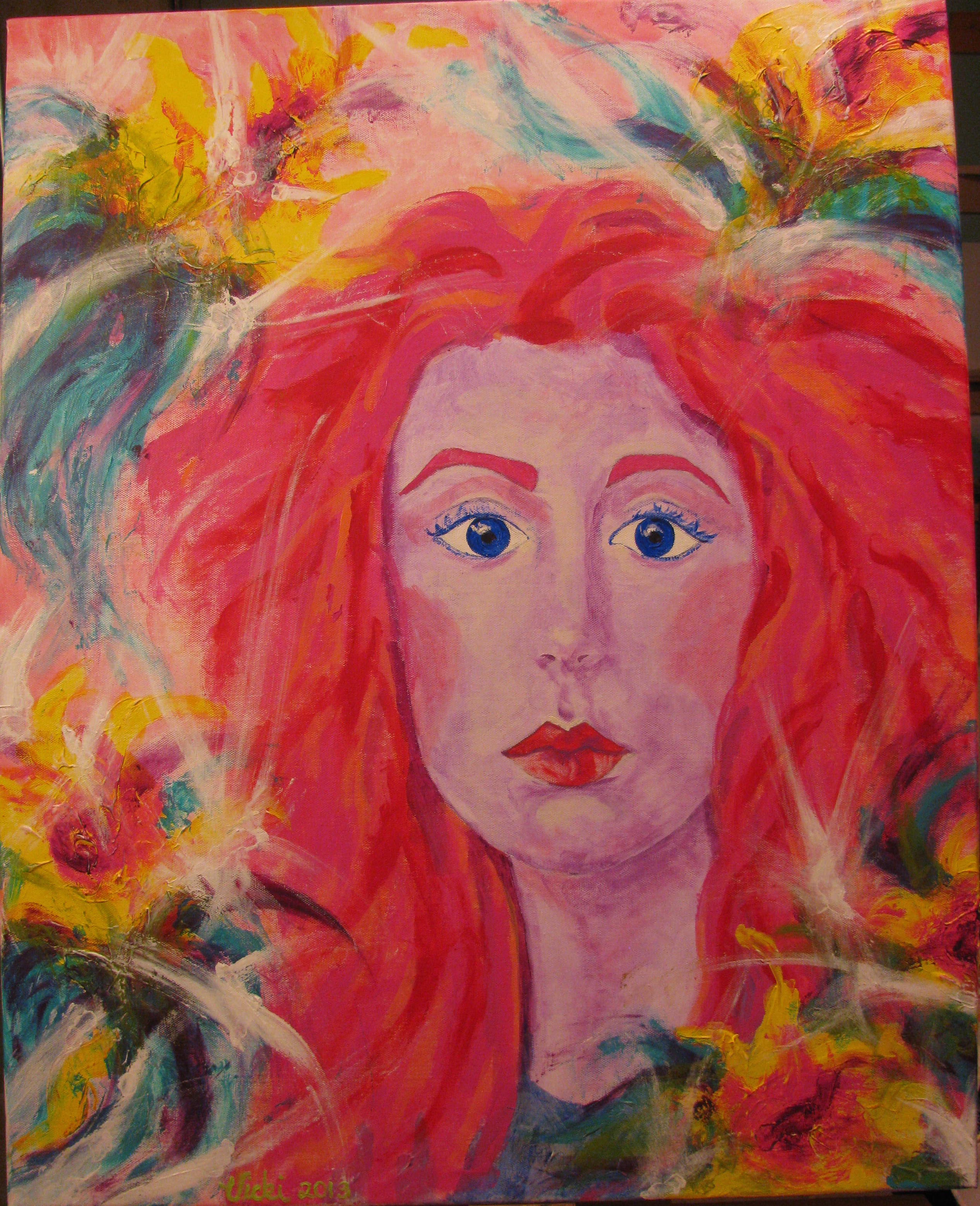That’s the thought behind Zelda, Frida, Victorine. The facial expression is almost blank, staring at the viewer face on. Yet, her creative essence and energy are oozing from her, bursting to life – something she can’t ignore or suppress. Her vacuous stare seems to say This is way beyond my control – my True Self and Purpose are erupting and there’s no stopping their progress. Just like the drive and creativity of the three ladies I admire, and just as I’m currently feeling.
